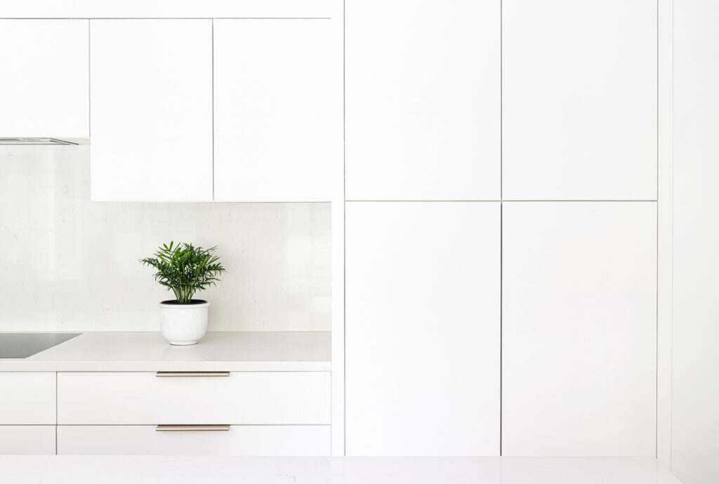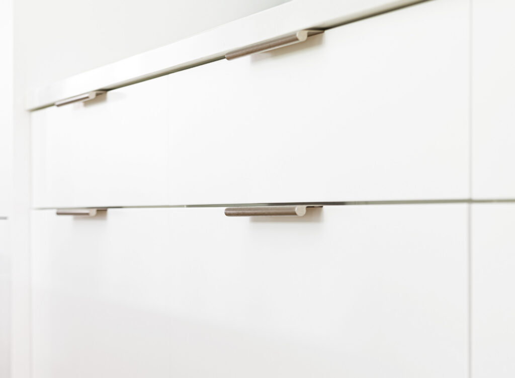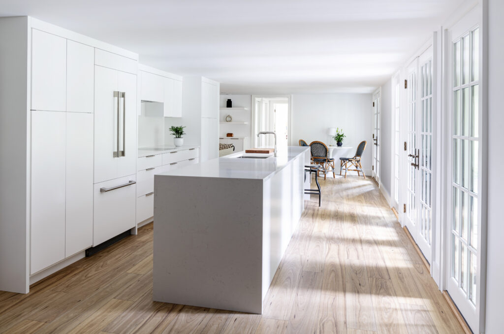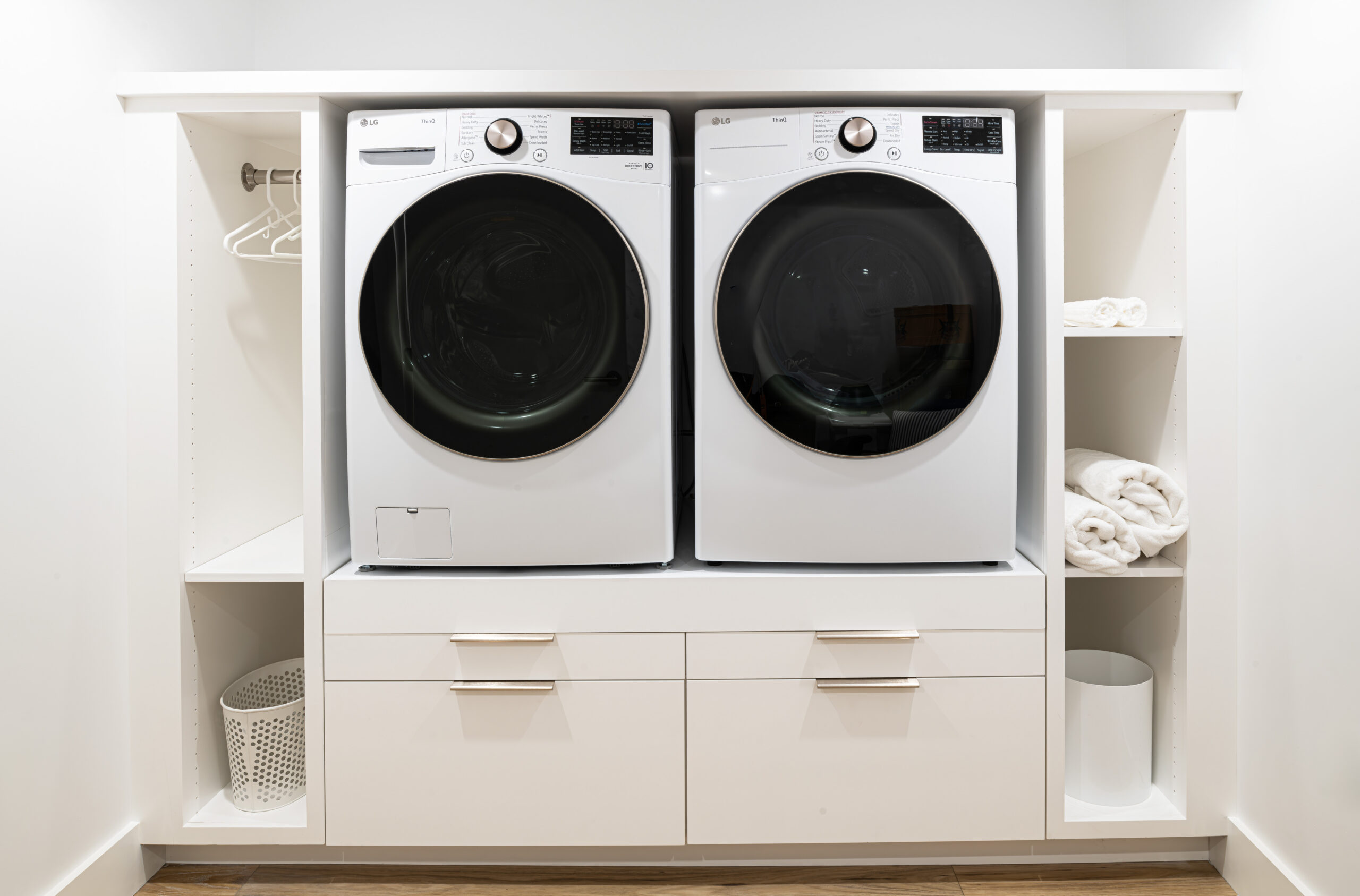 The new floor plan encompasses a primary bedroom with walk-in closet, full bathroom, living room, kitchen, sitting room, and laundry. Each room was designed with both immediate comfort and future accessibility in mind. Large appliances like the dishwasher, washer, and dryer were mounted at heights that eliminate unnecessary bending. Doorways and circulation paths maintain ADA clearances, creating space for future in-home assistance if needed without telegraphing institutional design.