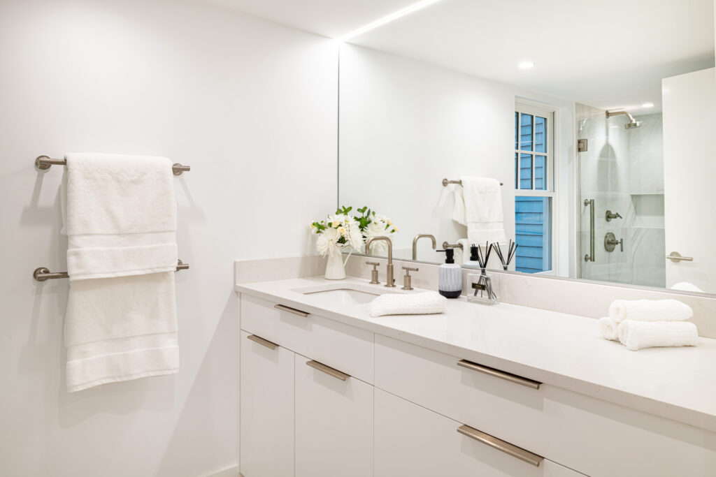 This secluded property’s lower level needed to evolve from a fragmented au pair accommodation into a comprehensive age-in-place suite for the homeowners’ family member. The challenge wasn’t just reconfiguring the space but anticipating needs that would change over time.